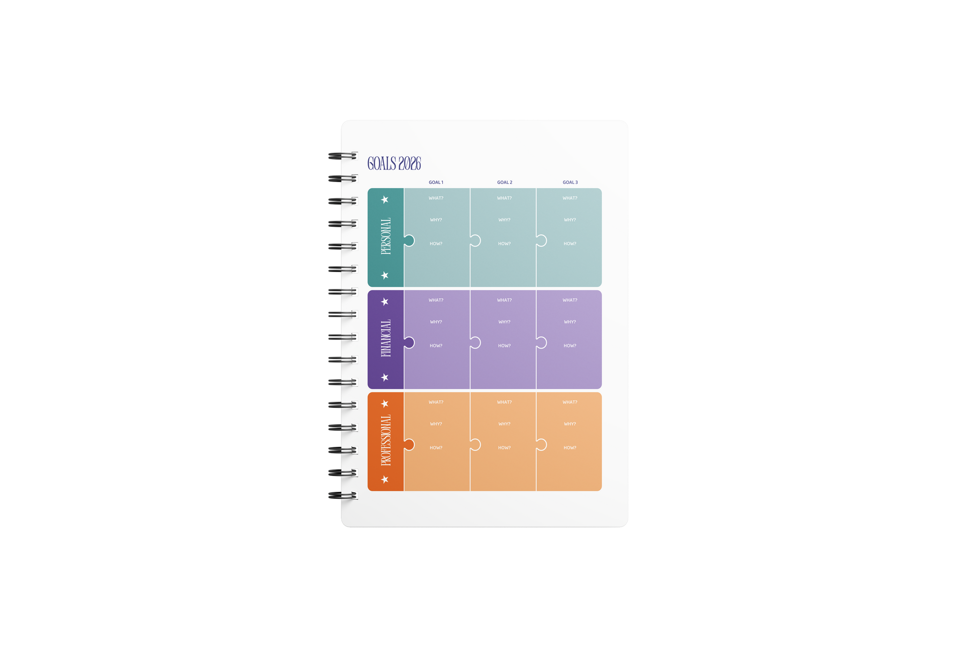 To make you focused on your goals, we have dedicated sections to scribble down your goals and visionary thoughts