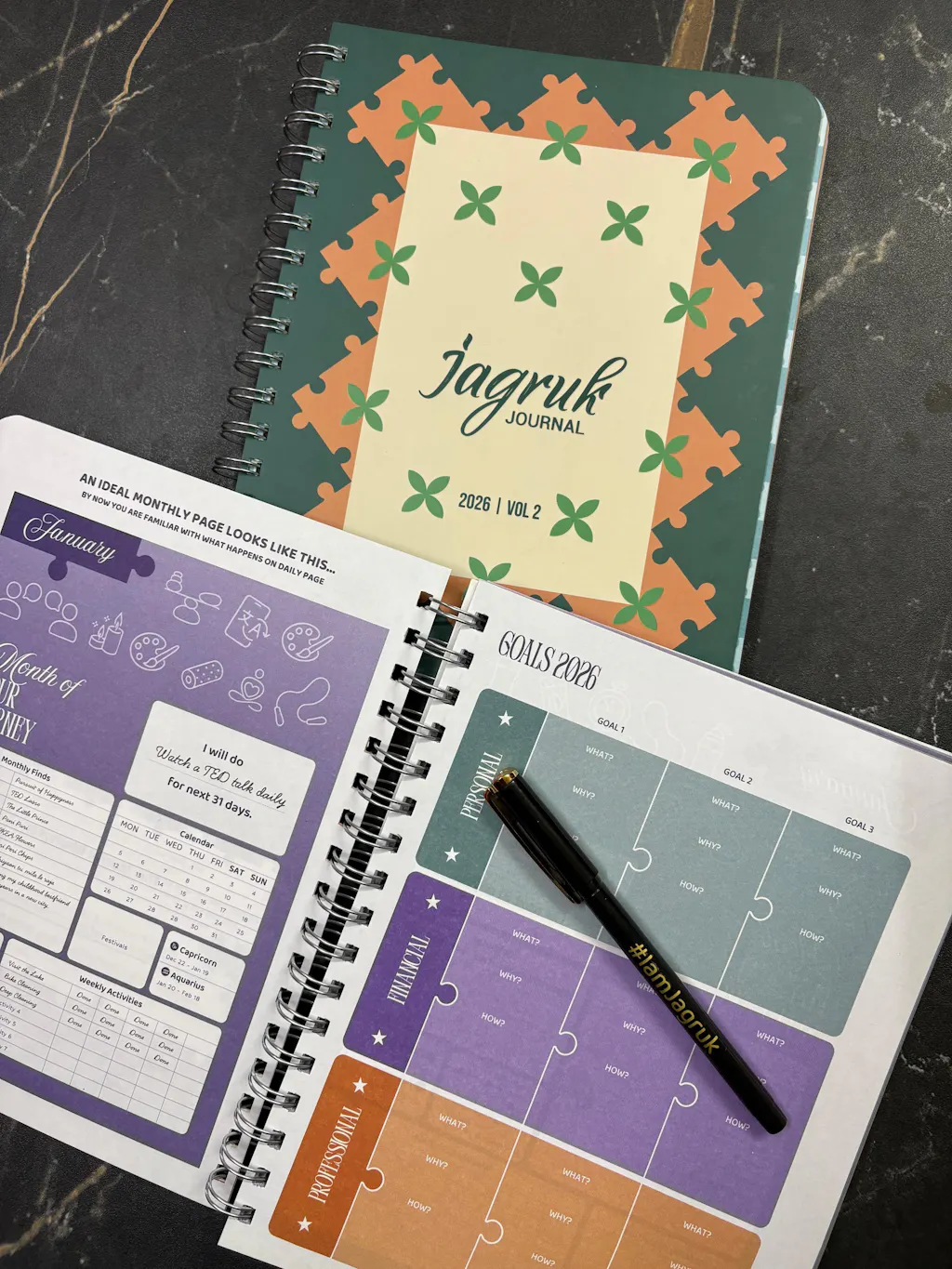 To make you focused on your goals, we have dedicated sections to scribble down your goals and visionary thoughts
